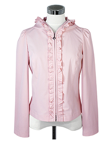 フード付きジップジャケット ・フリルが可愛らしい裏地もなく軽い仕立てのストレッチの効いたフード付きジップアップジャケット☆