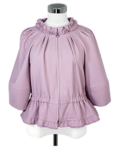 ネックフリルジップジャケット ・ネックフリルのギャザーが女性らしさあるペプラムジップジャケット☆