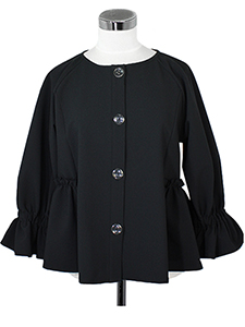 ペプラムノーカラージャケット ・袖口フレアにペプラムデザインがふんわり可愛らしいノーカラージャケット☆