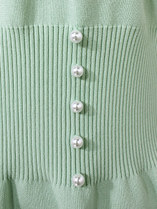パール付きワンピースニット ・ウエストリブでメリハリをつけた、パール使いがおしゃれなワンピースニット☆
