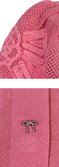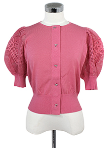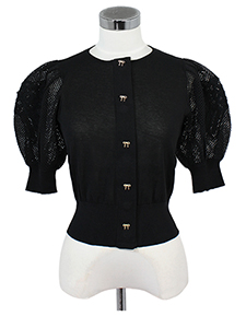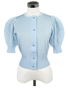 袖モチーフ入りカーディガン ・リボンモチーフのボタンがおしゃれな、袖にリボンモチーフをあしらったシャリ感のあるニット☆