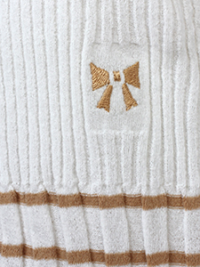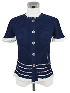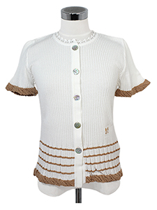 バイカラー裾ボーダーリブニット ・裾ボーダー柄がアクセントになったコットンの優しさがある半袖リブニット☆