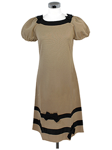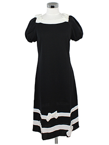 肩リボン付きワンピースニット ・リボンモチーフがあしらわれたキュートなバイカラーワンピースニット☆