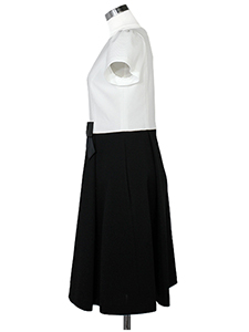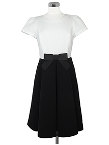 バイカラーハチスワンピース ・ウエストリボンがアクセントになった、バイカラー切り替えしハチスワンピース☆
