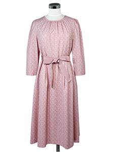 単色リボン柄ワンピース ・単色カラーの甘すぎないリボン柄プリントの、ウエストリボン付きワンピース☆