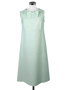 テープヤーンツイードワンピース ・衿ぐりやアームホールのフリンジが華やかさを演出した、テープヤーンツイードワンピース☆