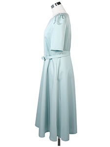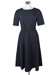 サテンフレアワンピース ・サテン地の上品さあるベルト付き半袖ワンピース☆