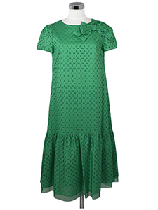 パンチングレースワンピース ・パンチングレースが爽やかな印象のリボンコサージュ付きワンピース☆