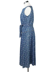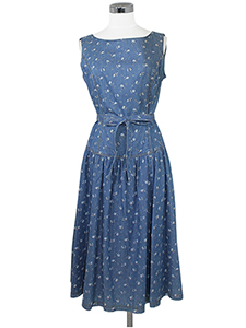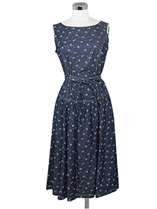 小花モチーフデニムワンピース ・小花モチーフをプリントした凝った素材のデニムワンピース☆