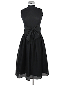 ニットドッキングシアーワンピース ・軽さと透け感が美しいボイルのスカートとニットを組み合わせワンピース☆