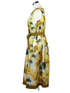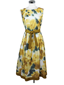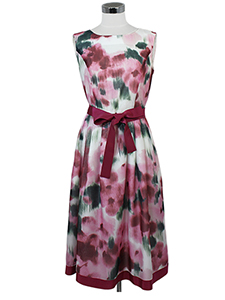 ほぐし柄フラワーPtワンピース ・ウェストとスカートの裾に配したテープでメリハリをつけたフラワープリントワンピース☆