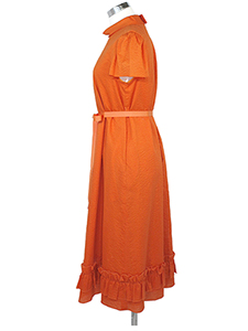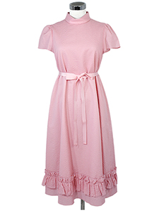 サッカー裾フリルワンピース ・清涼感のあるサッカー地の裾フリルがキュートなワンピース☆