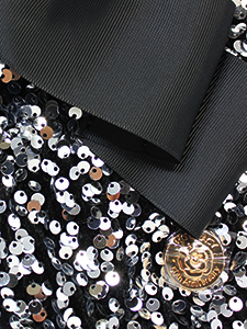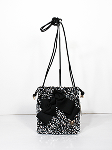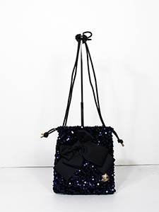 スパンコール巾着バッグ ・細めの合皮ショルダー紐がついたグログランのリボンがアクセントの巾着バッグ☆