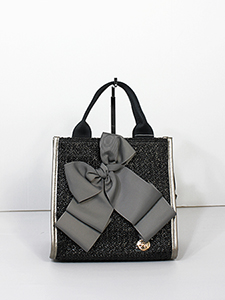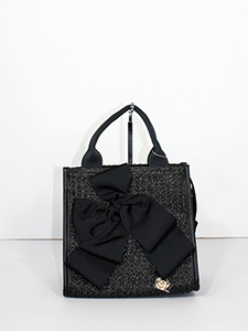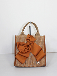 スクエア雑材リボントート ・マチもたっぷりある大きなリボンとトリミングがアクセントの雑材トートバッグ☆
