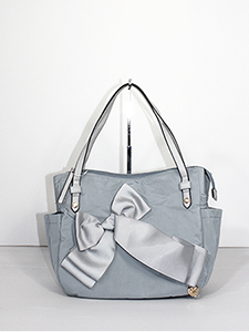 大リボン付きナイロンバッグ ・大きなリボンがアクセントの軽く扱いやすいA4が入るナイロンバッグ☆