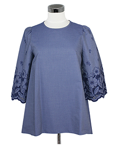 袖レースチュニックブラウス ・パンチングレースのお袖が女性らしいチュニックブラウス☆