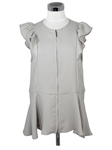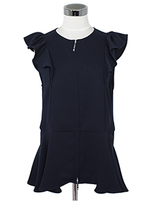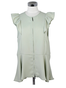 肩フリル前ジップブラウス ・肩フリルがエレガントな裾切替しジップブラウス☆