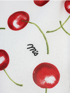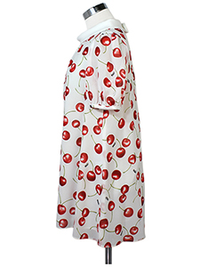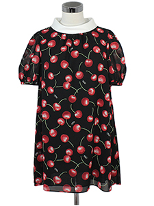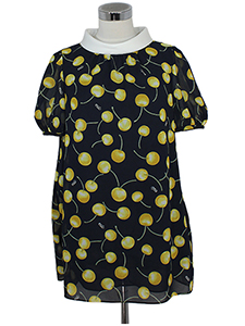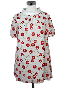 チェリーチュニックブラウス ・透け感があり軽やかな、ロールカラーできちんと感をプラスしたチェリー柄プリントブラウス☆