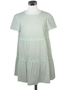 フリル切替しチュニックブラウス ・フリルの切替しがキュートな、シアー感のあるストレッチの効いたチュニックブラウス☆