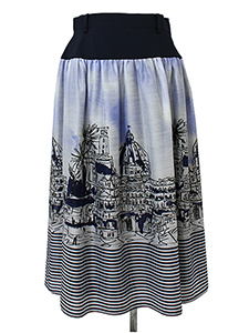 ボーダー入り風景柄スカート ・軽く薄い素材感のボーダー入りの風景画柄スカート☆