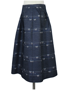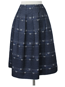 横段リボン柄スカート ・横段のリボンとロゴジャガードがおしゃれなボックスフレアスカート☆