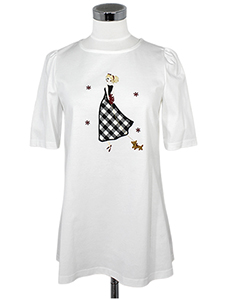 レディーチュニックカットソー ・ディテールにこだわった女の子と犬のシリーズのチュニックカットソー☆