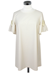 袖リボンチュニックカットソー ・袖のグログランリボンが可愛いUVカットも施されたチュニックカットソー☆