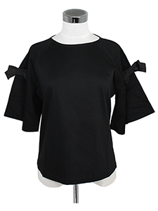 袖フレアリボンカットソー ・袖フレアが可愛いグログランリボン付きの半袖カットソー☆