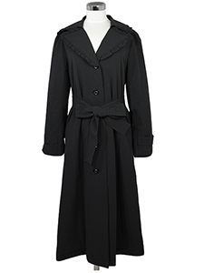 テーラー中綿入りロングコート ・フリル襟が女性らしさあるウエストリボン付き中綿入りロングコート☆