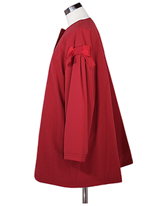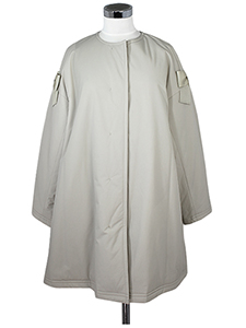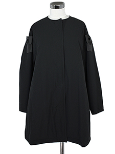 中綿入りノーカラーコート ・袖のリボンがキュートなスッキリとしたノーカラーの中綿入りコート☆