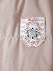 表地 ナイロン-85% ポリウレタン-15% グログランテープ ポリエステル-100% 中綿 ダウン-90% フェザー-10% 前立て部分中綿 ポリエステル-100% 裏地 ナイロン-100% |