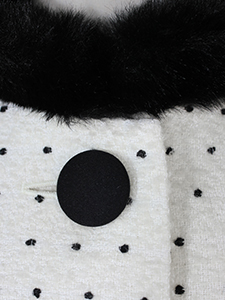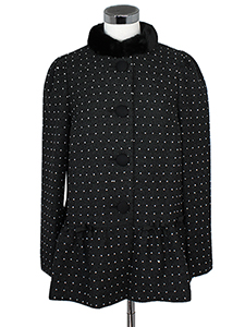ドット風ペプラムショートコート ・ペプラムになった裾とリボンがキュートな、フェイクファー襟付きドット風ショートコート☆