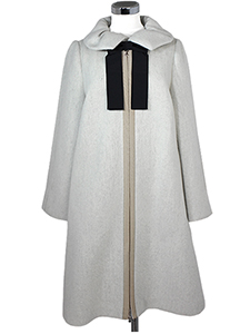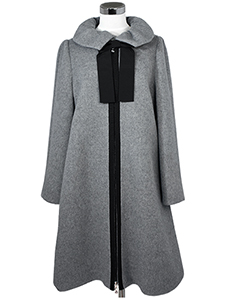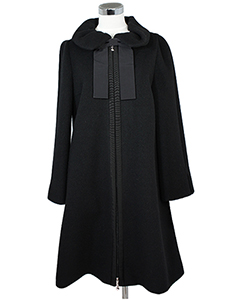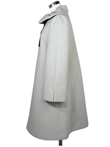 リボン付きウールロングコート ・ギャザー襟が可愛いグログランテープでメリハリをつけたウールロングコート☆