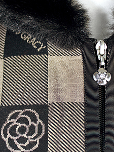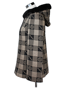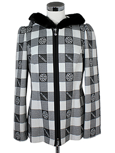 カメリア&ロゴショートコート ・チェックの中にカメリアとロゴを配したボンディング素材のファー付きフードコート☆