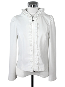 フード付きジップジャケット ・フリルが可愛らしい裏地もなく軽い仕立てのストレッチの効いたフード付きジップアップジャケット☆