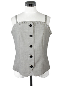 フリル付きビスチェ ・胸元のフリルでフェミニンな印象に仕上げた、お花のボタンもアクセントになったビスチェ☆