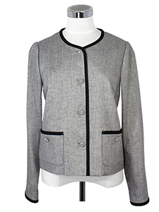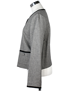 配色ラメ入りジャケット ・縁の配色がアクセントになったボタンがおしゃれなラメ入りノーカラージャケット☆
