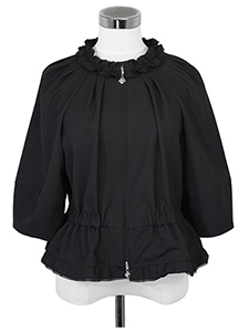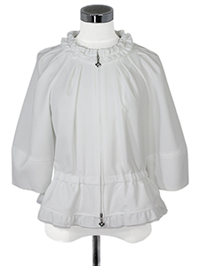 ネックフリルジップジャケット ・ネックフリルのギャザーが女性らしさあるペプラムジップジャケット☆