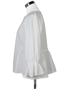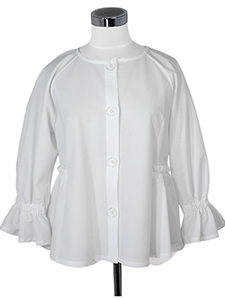 ペプラムノーカラージャケット ・袖口フレアにペプラムデザインがふんわり可愛らしいノーカラージャケット☆