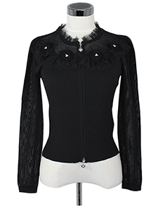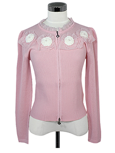 花モチーフリブジップニット ・フラワーモチーフが華やかさをプラスしたかぎ編みとリブのコンビジップニット☆