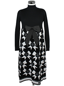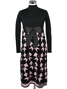 リボン柄ニットコンビワンピース ・モールジャガード素材でリボン柄を表現した裾ロゴ入りニットワンピース☆