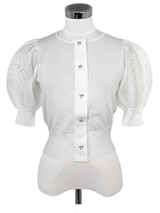 袖モチーフ入りカーディガン ・リボンモチーフのボタンがおしゃれな、袖にリボンモチーフをあしらったシャリ感のあるニット☆