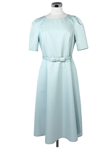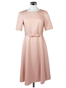 サテンフレアワンピース ・サテン地の上品さあるベルト付き半袖ワンピース☆
