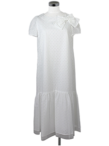 パンチングレースワンピース ・パンチングレースが爽やかな印象のリボンコサージュ付きワンピース☆