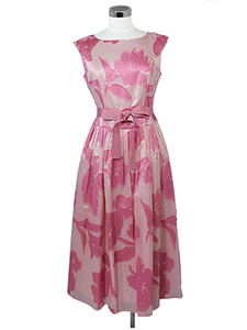 花柄ジャガードリボンワンピース ・立体感のあるジャガード生地にお花をちりばめたリボン付きワンピース☆