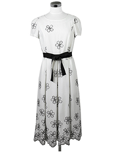 裾スカラップ刺しゅうワンピース ・フラワー刺しゅうがエレガントンなフレアワンピース☆