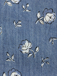 小花モチーフデニムワンピース ・小花モチーフをプリントした凝った素材のデニムワンピース☆