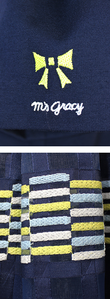 表地 上身頃 綿-65% ポリエステル-30% ポリウレタン-5% スカート ポリエステル-100% 刺しゅう糸 ポリエステル-100% グログランテープ ポリエステル-100% 裏地 ポリエステル-100% |