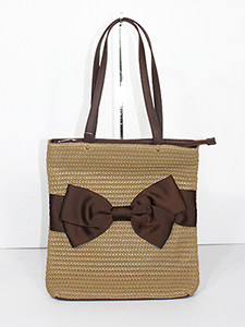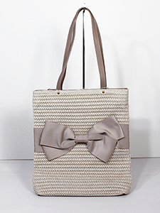 縦型雑材リボントートバッグ ・口部分はファスナーになった大きめのリボンがポイントのA4が入るトートバッグ☆