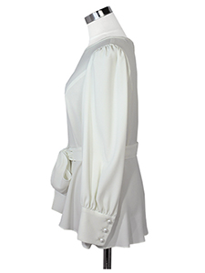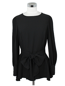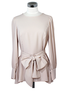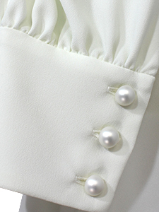 袖口パールボタンブラウス ・袖口にあしらわれたパールボタンがエレガントさをプラスした、リボン付きジョーゼットブラウス☆